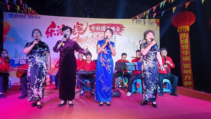 中秋、国庆“双节”即将到来,9月27日,菩提街道碧园社区联合碧桂园物业长寿分公司举办了一场别开生面的文艺晚会。社区居民自编、自演、自赏,以多元艺术形式共庆佳节。晚会现场,15个特色节目接连登场,从团体表演到个人展示,居民们化身“文艺主角”,将日常邻里间的“隐藏才艺”搬上舞台。非洲鼓演奏《中国人》、合奏《歌唱祖国》、金钱板《讲客观》等精彩的节目,引得台下观众连连叫好。从节目细节到整体策划,社区“主人翁”精神贯穿始终,折射出基层治理的温度与活力。居民杨青连表示,热闹的庆祝活动不但营造了节日氛围,也让邻里情谊在舞台上下悄然蔓延。记者 陈钰